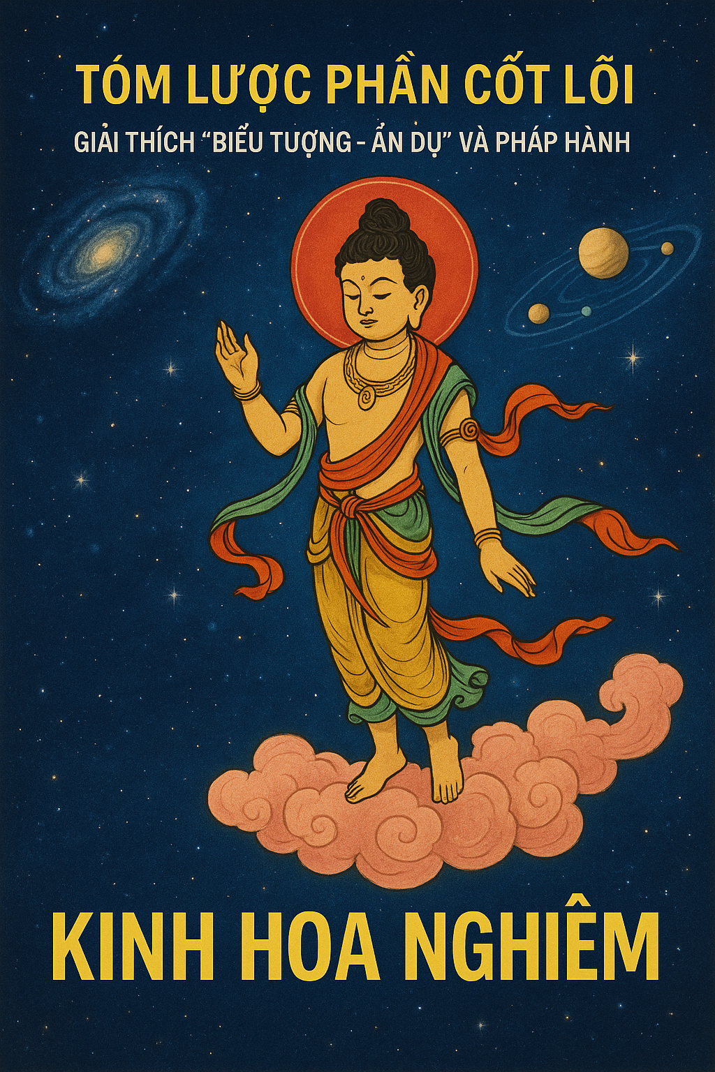 Tổng quan giáo nghĩa, biểu tượng – ẩn dụ và pháp hành Kinh Hoa Nghiêm; nhấn mạnh hành trình Thiện Tài Đồng Tử, mười đại nguyện Phổ Hiền, ứng dụng thiền quán và thực hành chuyển hóa thân tâm trong đời sống hiện đại.